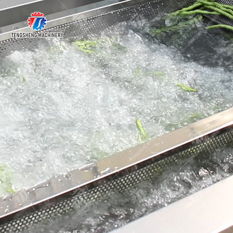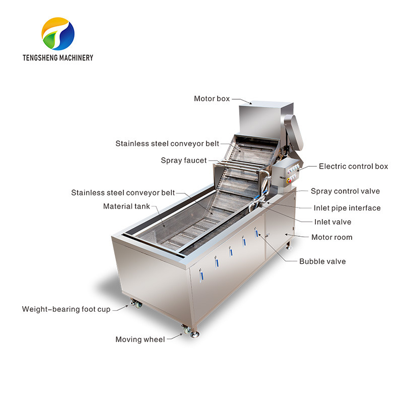 El lavado de la fruta y verdura y el vibrar secando la cadena de producción al aire se compone de la lavadora vegetal de la burbuja TS-X200 (modelo modificado para requisitos particulares), de la fruta y verdura TS-ZD18 que drena la máquina, y de la secadora paralela del aire TS-PX35.