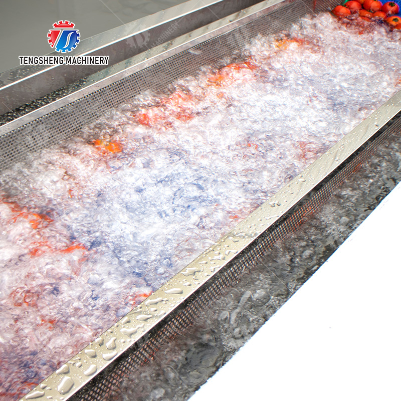 Principio de funcionamiento: La máquina de la limpieza de la burbuja utiliza el gas de alta presión para generar burbujear, la bomba de la agua en circulación practicando surf y levantando la limpieza de alta presión del triple del espray de agua. Puede separar con eficacia el sedimento y las impurezas en las verduras. El volumen del abastecimiento de agua en el proceso de rociadura de alta presión es ajustable, que es conveniente para que los clientes ajusten fexiblemente según el volumen y la limpieza vegetales.